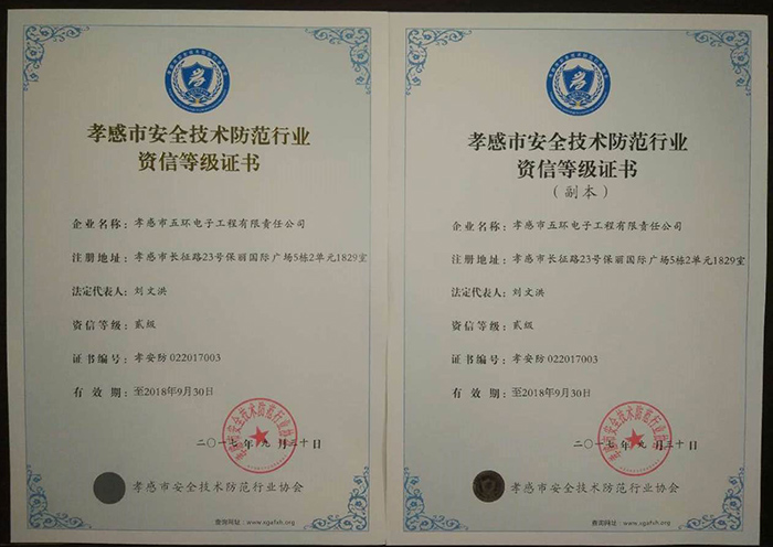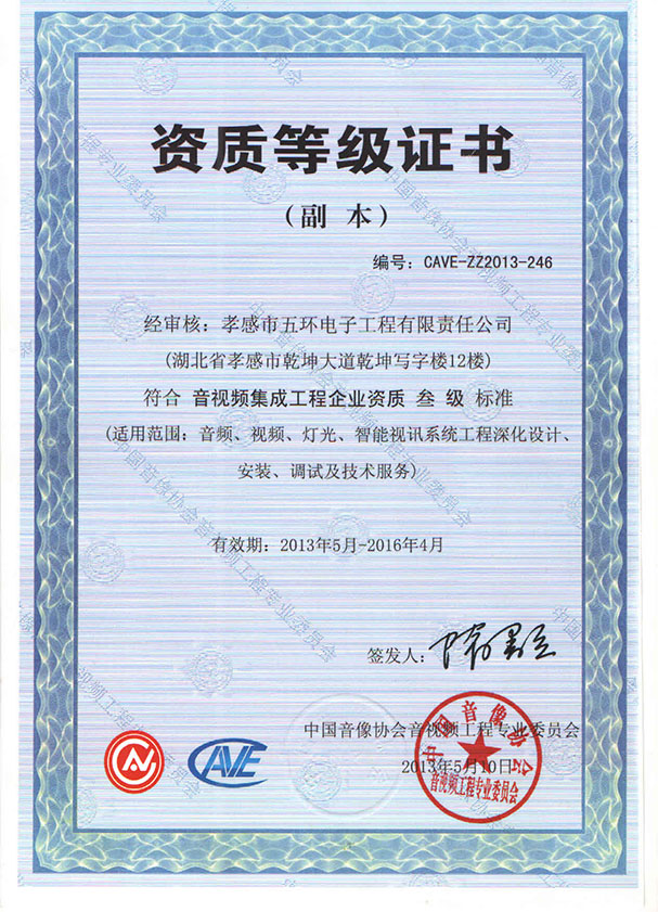 ISO9001工程質(zhì)量體系認證 湖北A類安防備案證 音視頻專業(yè)工程三級 全國安防三級